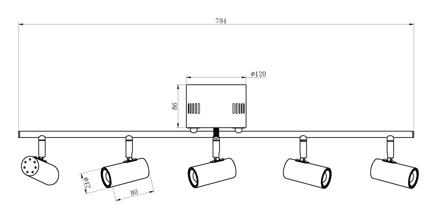 Takspotlight Vit Rak 5L Aneta Lighting Gusto