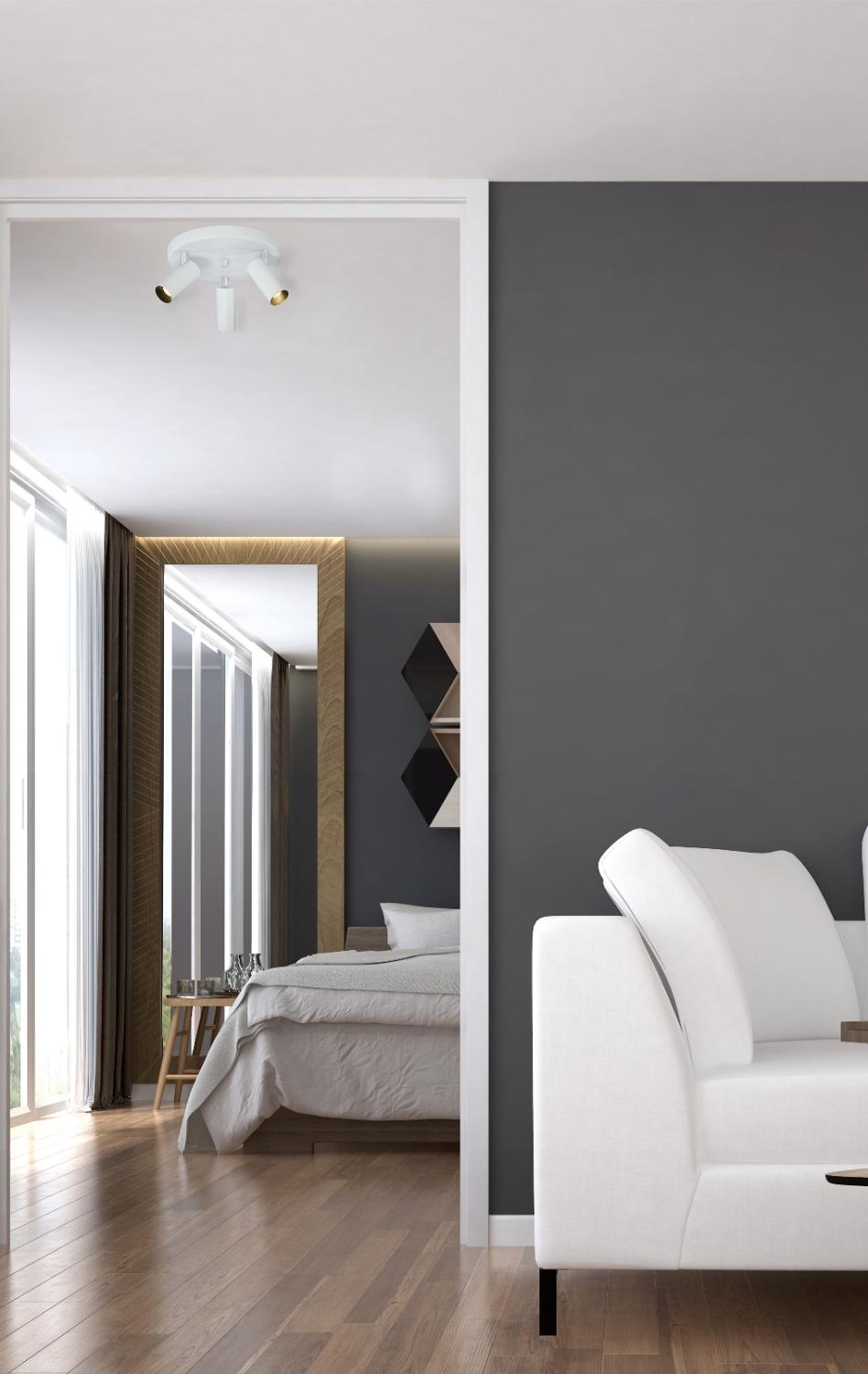 Takspotlight Concord från Aneta Lighting har en rund design i mattlackerad vit metall som passar perfekt i de flesta hem. Den har tre justerbara lamphuvuden med utbytbara LED-ljuskällor och inbyggda bländskyddsraster, som ger ett behagligt, riktat ljus utan att blända. Lampan avger ett varmvitt sken och är dimbar för att kunna anpassas efter stämning och behov. Bländskyddsrastrena kan tas bort om du vill ha ännu mer ljus. LED-ljuskällor med en maxeffekt på 3x7W ingår.