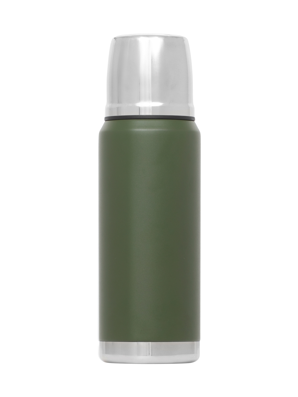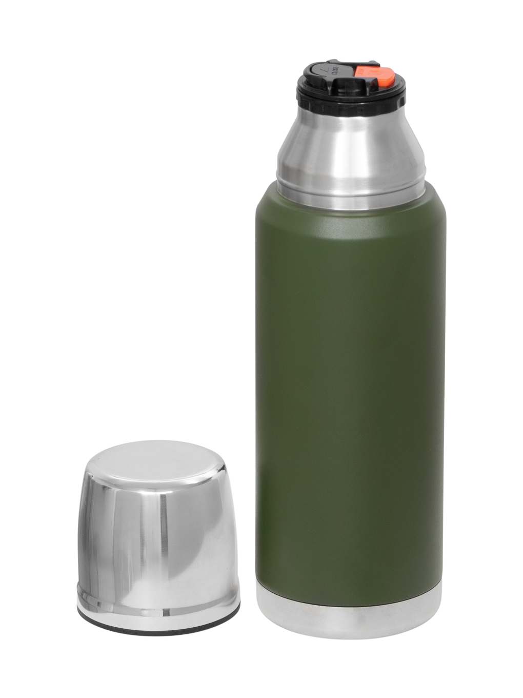 Termosflaska med bambulock kommer från det svenska varumärket Orrefors Outdoor. En grön och vakuumisolerad termos av rostfritt stål med dubbla väggar där innerväggen är pläterad med koppar för bästa värmehållningsförmåga. Rymmer 75 cl.