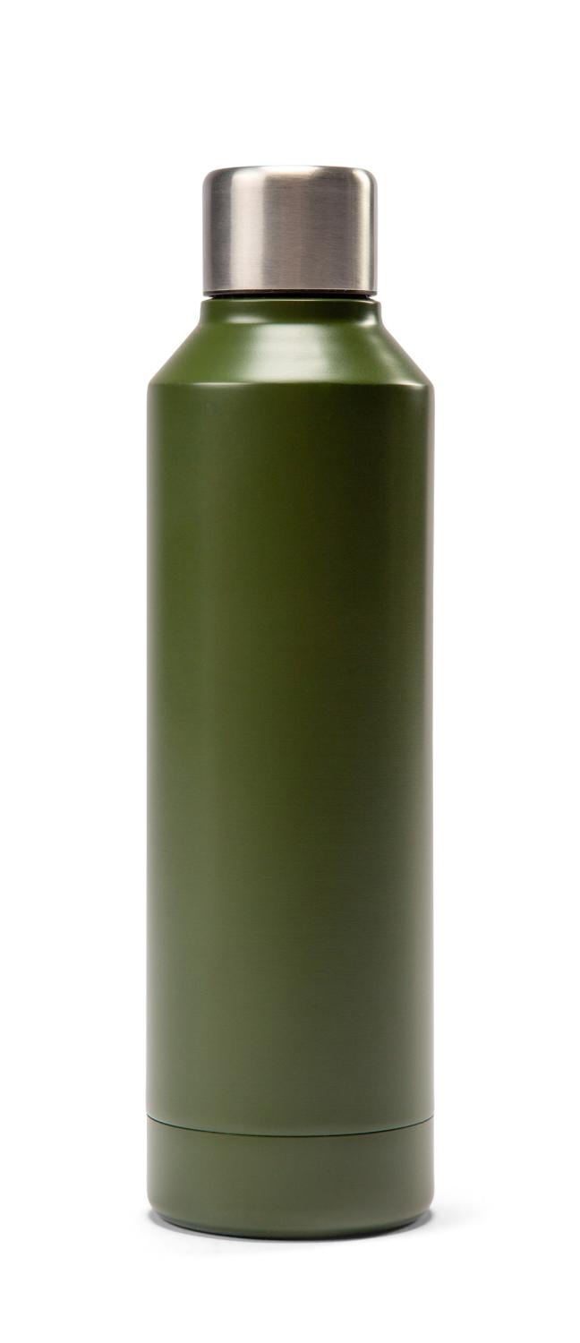 Termosflaska från Orrefors Hunting i rostfritt stål med elegant mörkgrön design och dubbelväggsisolering som håller drycker varma eller kalla under lång tid. Startar drycken vid 97 °C behåller den värmen och håller 61 °C efter 8 timmar, och om drycken börjar vid 0 °C är den fortfarande 0,8 °C efter 24 timmar. Denna stilrena och tåliga termos är perfekt för både vardag och friluftsliv, och gör det enkelt att njuta av drycken vid optimal temperatur oavsett var du är. Rymmer: 50 cl.