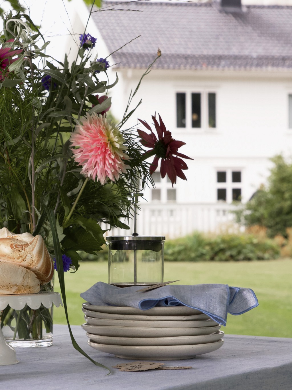 Chambrayvävd bomulls- och linneblandning med dekorativ söm längs kanterna. Skapar en lyxig och inbjudande känsla till både vardags- och festdukningen.