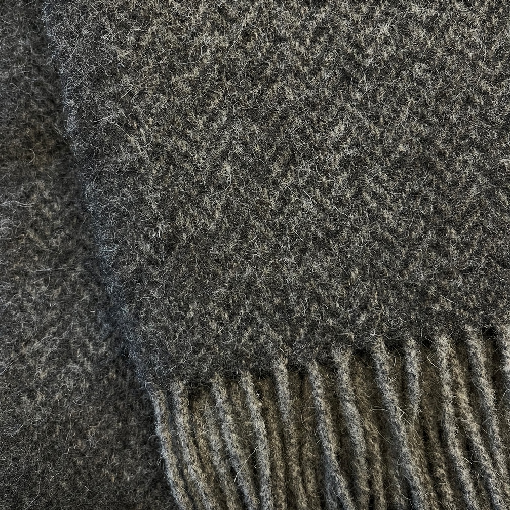 Pläd Glasgow från Redlunds i 100% ull med diskret mönster och fransar på kortsidorna. Den mörkgråa pläden är mjuk och stilren, och fungerar som en elegant inredningsdetalj i vardagsrum, sovrum eller läshörna.
