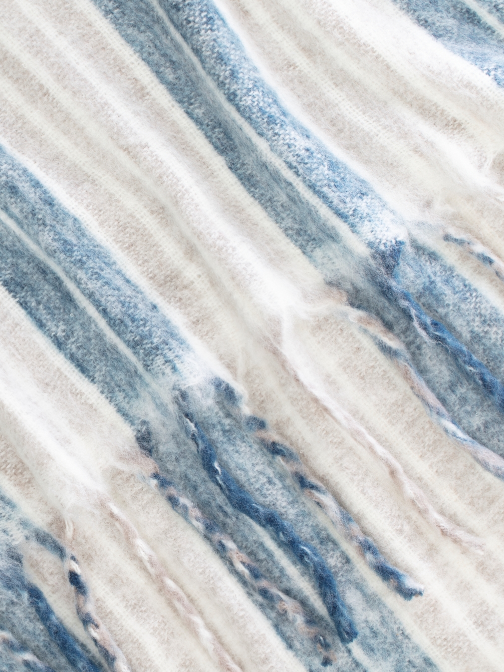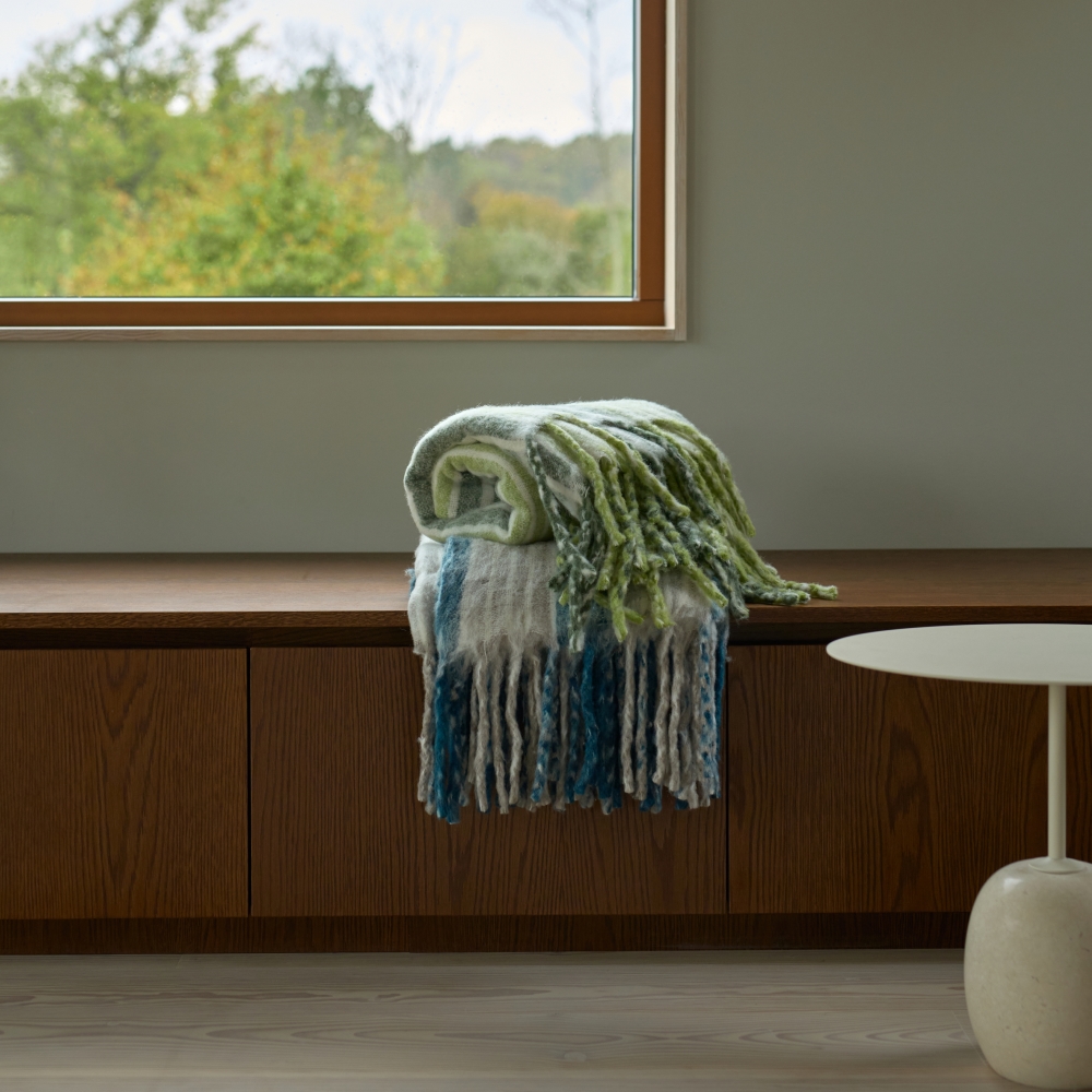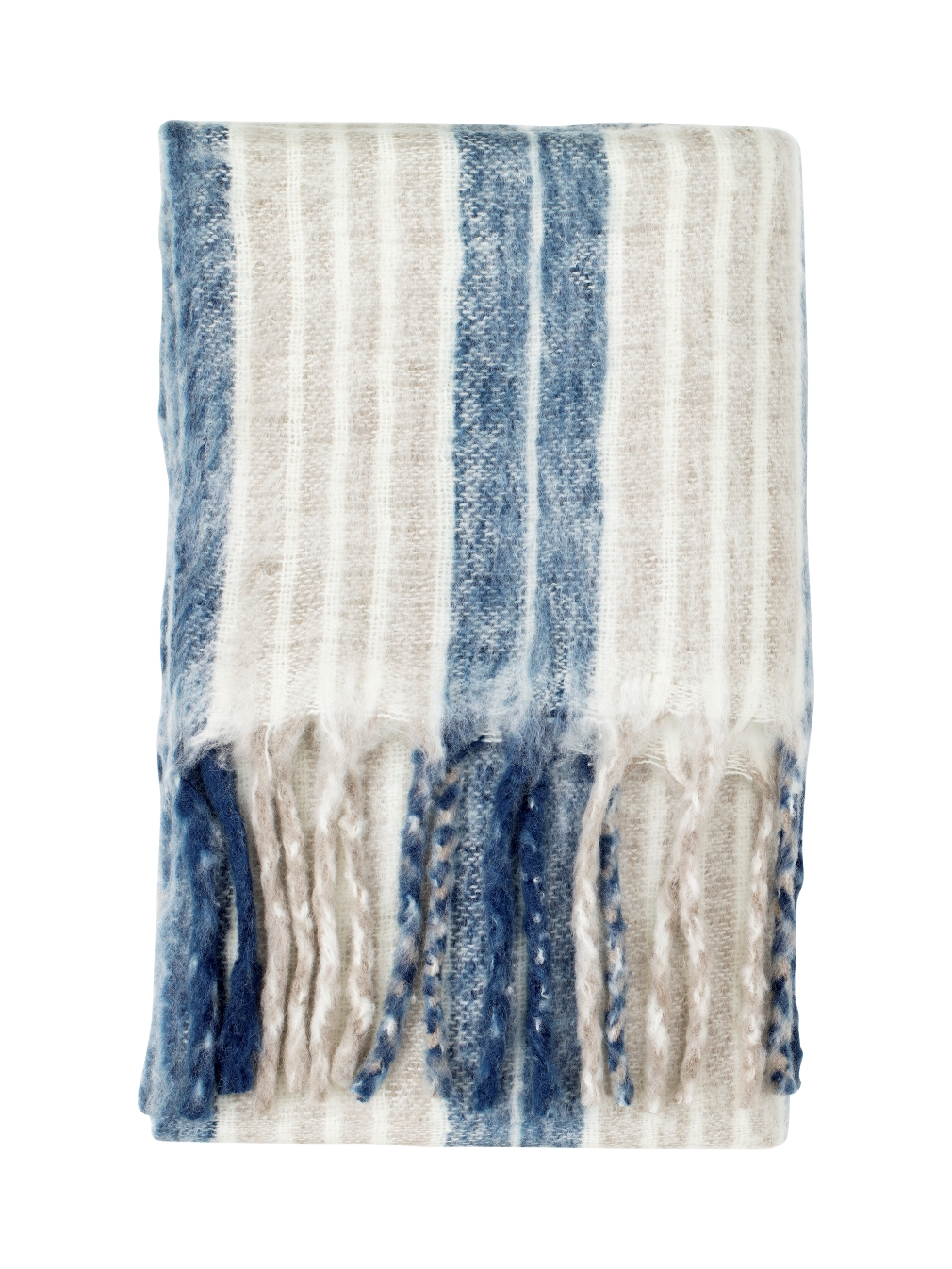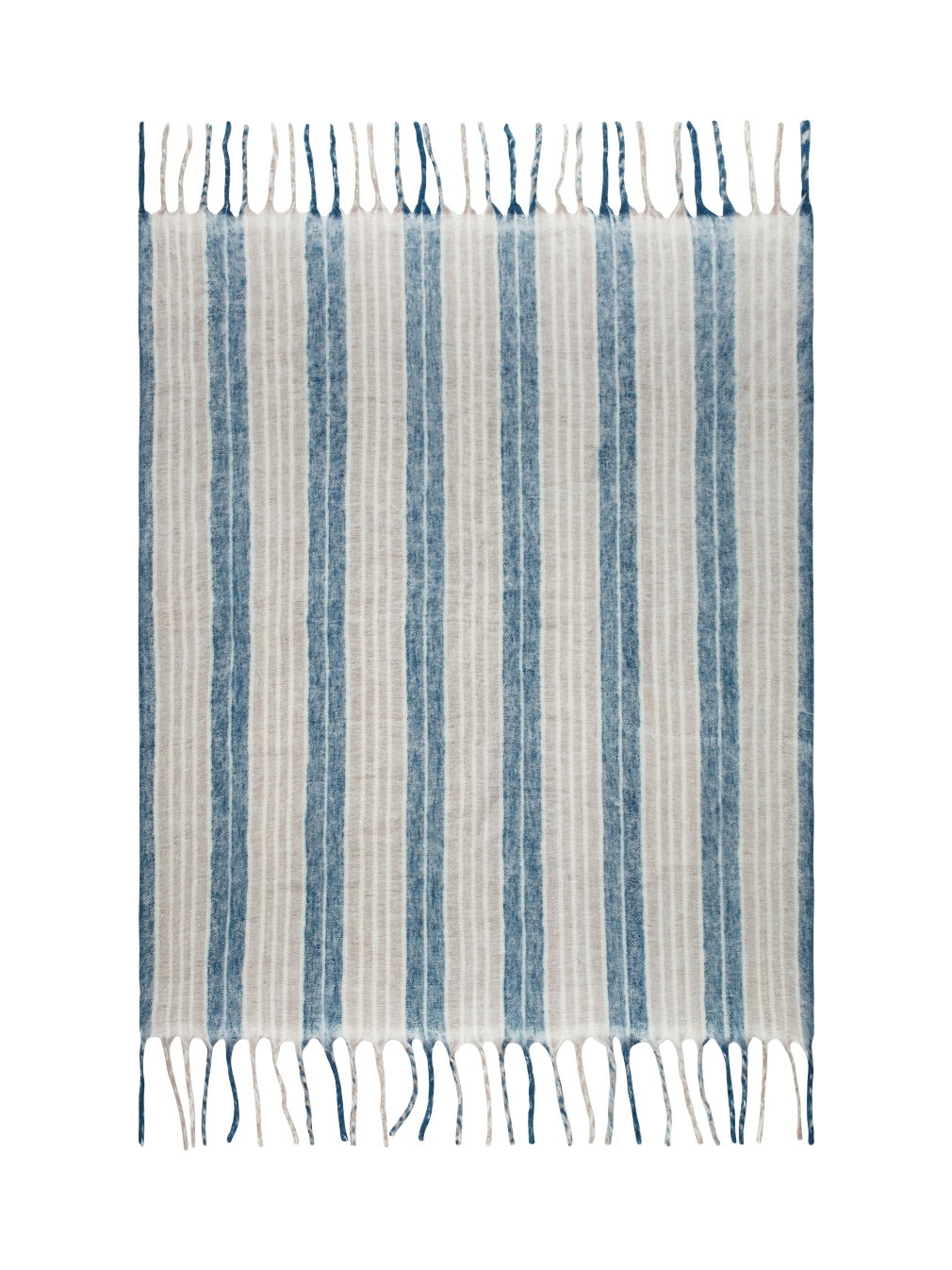 De dekorativa, tvinnade fransarna längs kortsidorna ramar in designen och plockar upp vävens melerade färgskala på ett naturligt sätt. Perfekt att lägga över soffan, på sängen eller att svepa om sig när vinden är lite kylig. Storlek: 130x170 cm.