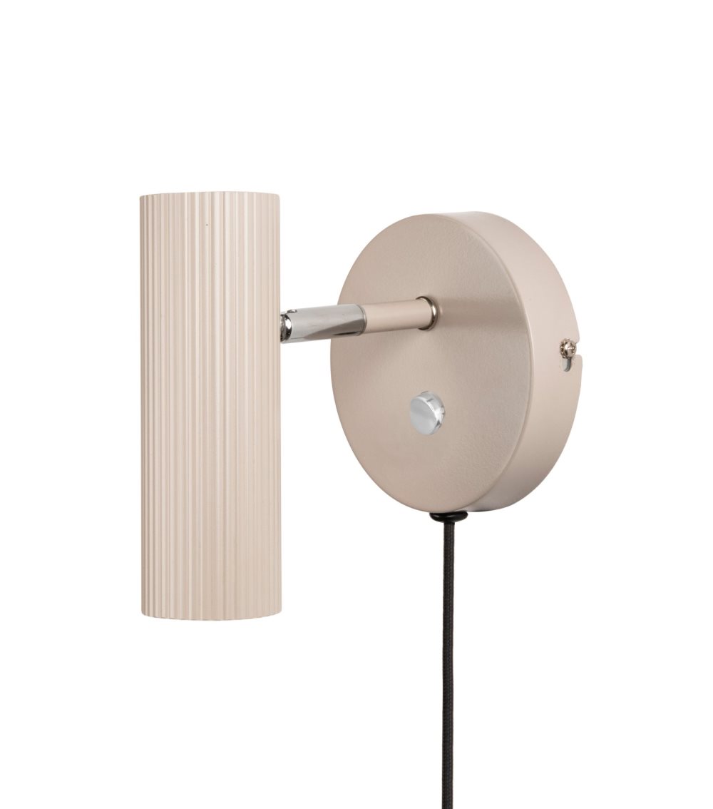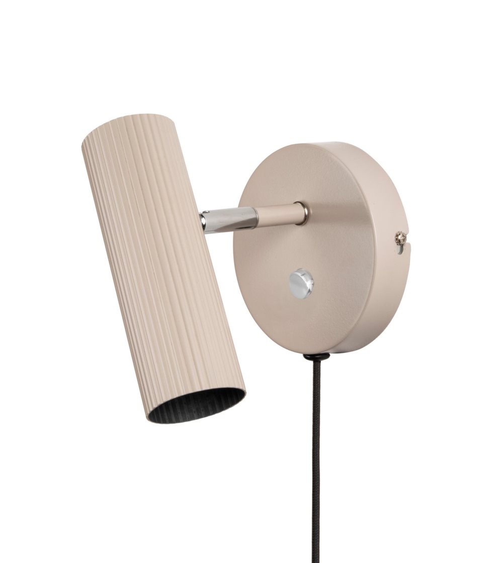 Vägglampa Hubble från Globen Lighting har en modern design med tubformad, räfflad metallskärm som kan vinklas både i höjd- och sidled. Vägglampan är tillverkad i matt beige lackerad metall med fina kromfärgade detaljer. Brytare (on/off) finns på väggplattan för enkel användning. Kan enkelt användas för fast installation om så önskas. Ljuskälla ingår ej.