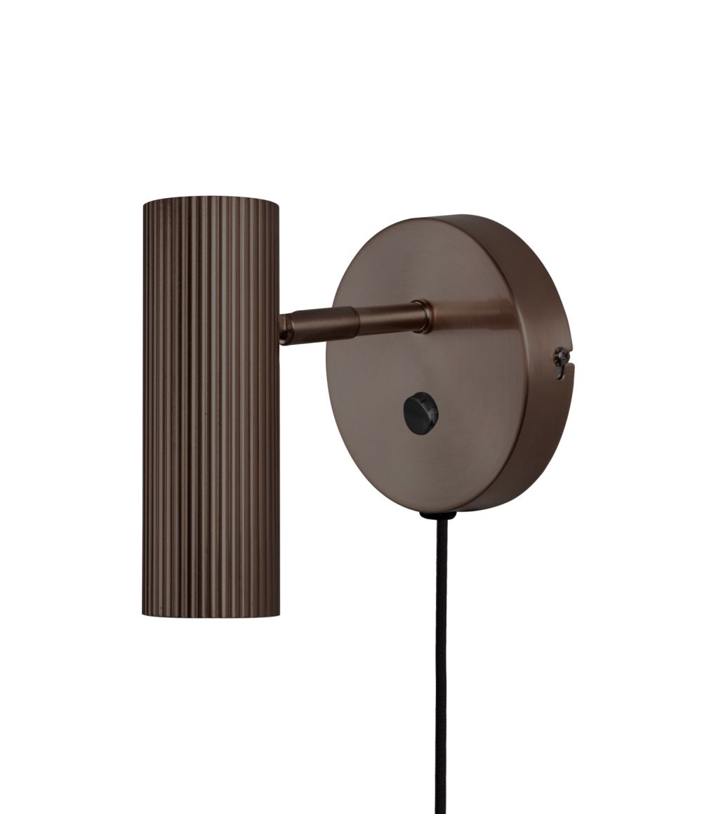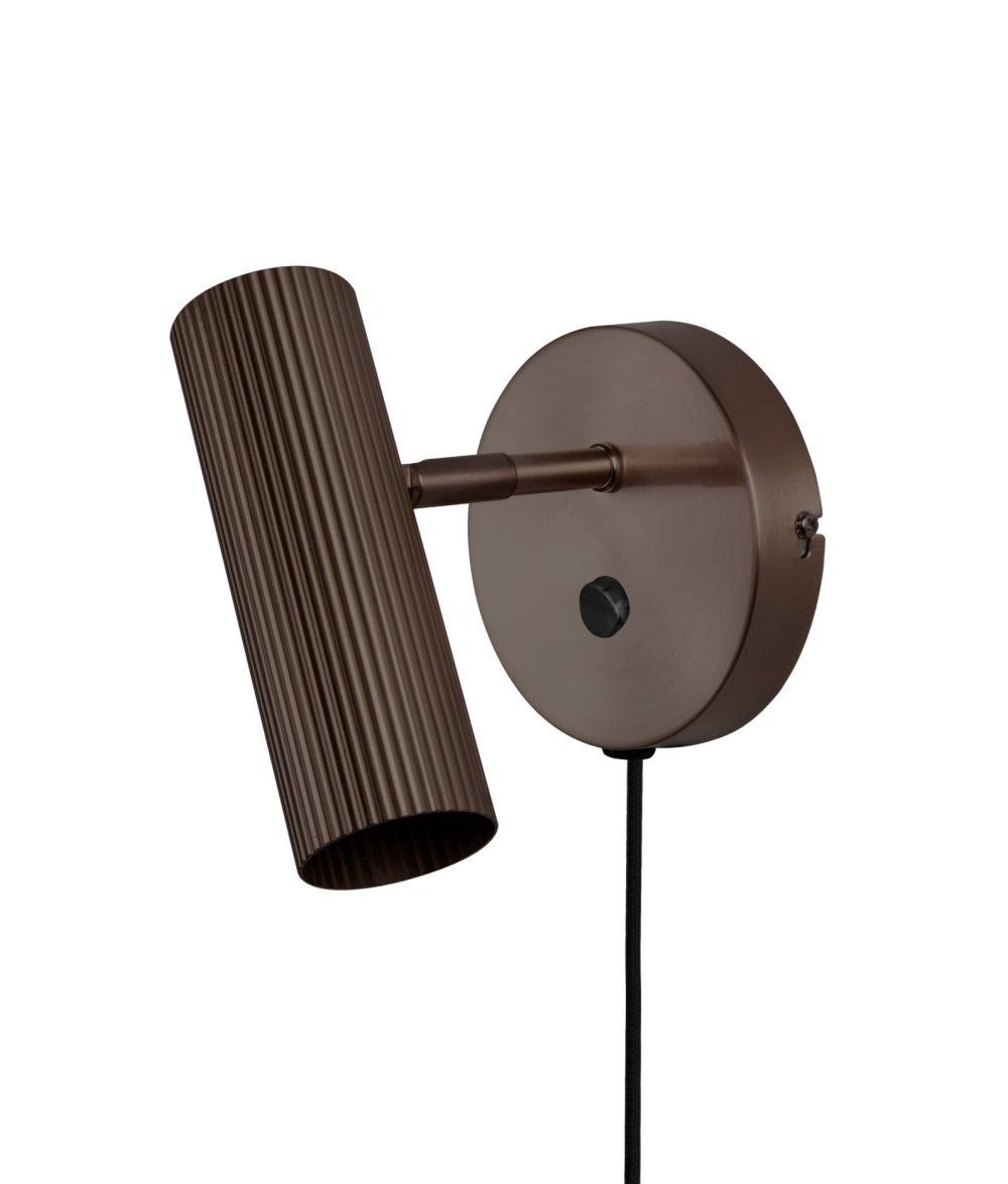 Vägglampa Hubble från Globen Lighting har en modern design med tubformad, räfflad metallskärm som kan vinklas både i höjd- och sidled. Vägglampan är tillverkad i metall i en vacker brons-målad finish. Brytare (on/off) finns på väggplattan för enkel användning. Kan enkelt användas för fast installation om så önskas. Ljuskälla ingår ej.