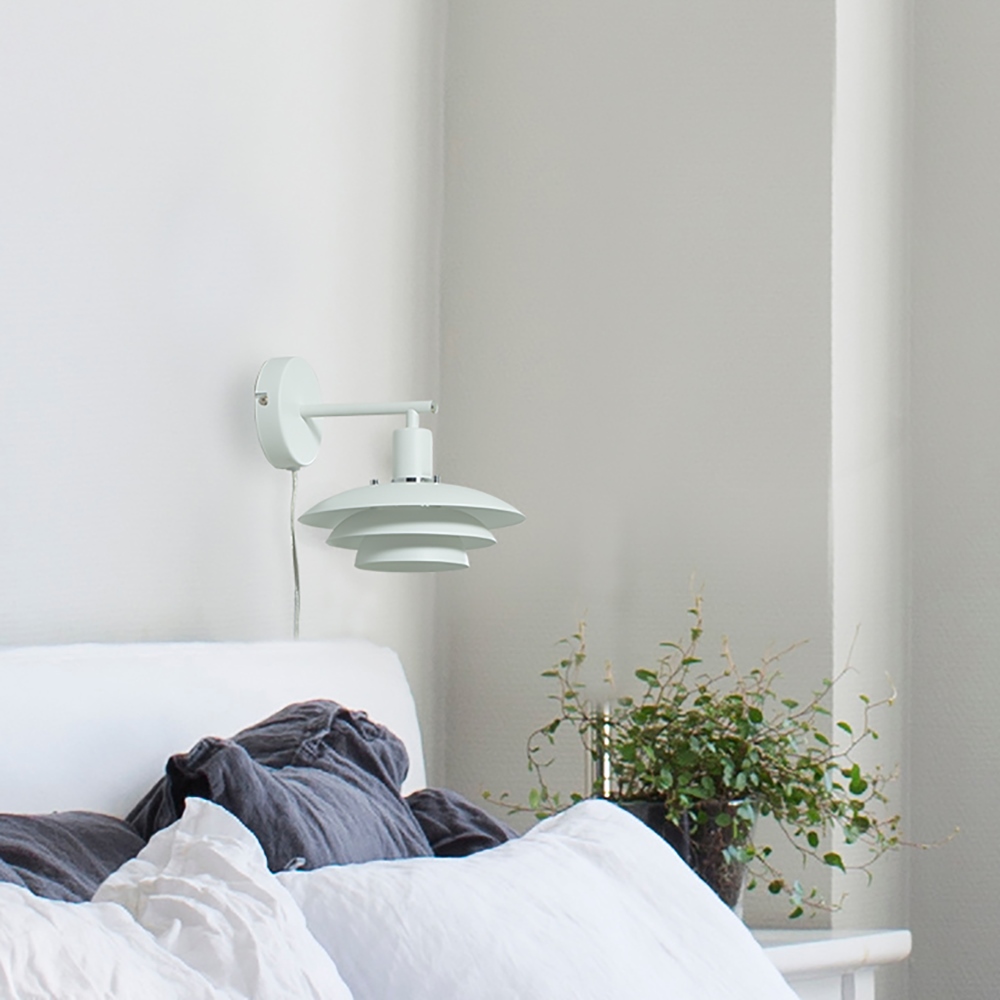 Vägglampa Epsilon från Aneta Lighting har en tidlös design och modern funktion. Vägglampan har en karaktäristisk, tredelad skärm i vit metall som är konstruerad för att sprida ljuset mjukt och helt bländfritt. Den är lättplacerad och passar lika perfekt som en stilfull läslampa vid sängen, som ett välkomnande inslag i hallen. Rekommenderad ljuskälla: E14, max 25W. Ljuskälla ingår ej.