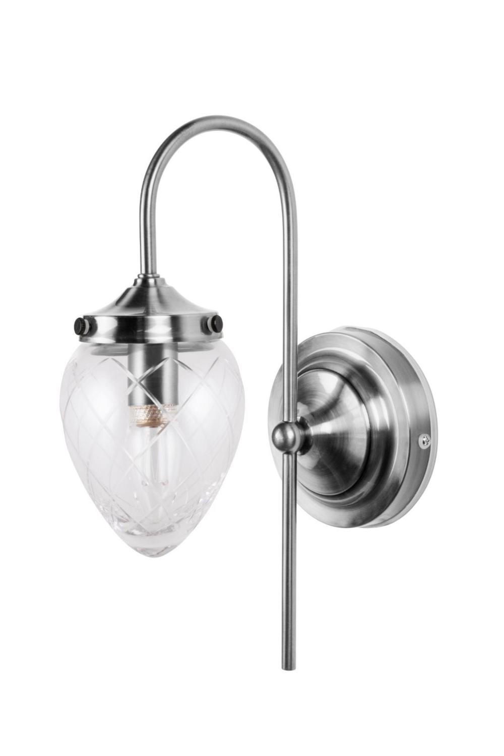 Vägglampa Juni från Globen Lighting har en stilfull design med vacker slipad kupa i klarglas och detaljer i antikstål som andas tidigt 1900-tal. Designen för tankarna till herrgårdar och idylliska svenska småstäder. Tack vare IP44-klassningen passar vägglampan utmärkt i både badrum och kök, där den skapar en nostalgisk och elegant atmosfär. Endast för fastinstallation. Ljuskälla ingår ej.