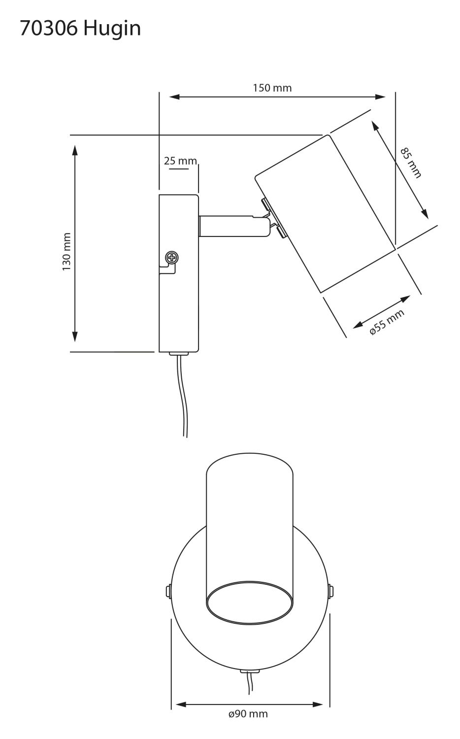 Vägglampa Hugin från Aneta Lighting har en tidlös och praktisk design i metall, med justerbart lamphuvud som är perfekt som läslampa vid sängen. Den avskalade designen gör att den smälter in i de flesta hem och inredningsstilar. Den levereras med en klar sladd med strömbrytare på sladden. Till Hugin rekommenderas en ljuskälla med en GU10 sockel, max 9W. Ljuskälla ingår ej.