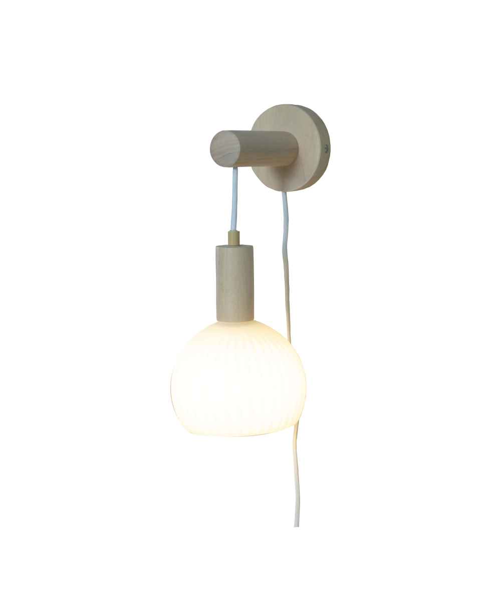 Vägglampa Lapponia från Aneta Lighting har en naturnära och ombonad design med räfflad glaskupa och detaljer i vitoljat trä. Den sprider ett mjukt och behagligt ljus och passar utmärkt både som stämningsbelysning i vardagsrummet eller läslampa bredvid sängen. Vägglampan Lapponia är ett stilfullt val för både det skandinaviska och moderna hemmet, och blir en dekorativ detalj i din inredning. Rekommenderad ljuskälla: E14, max 10W. Ljuskälla ingår ej.