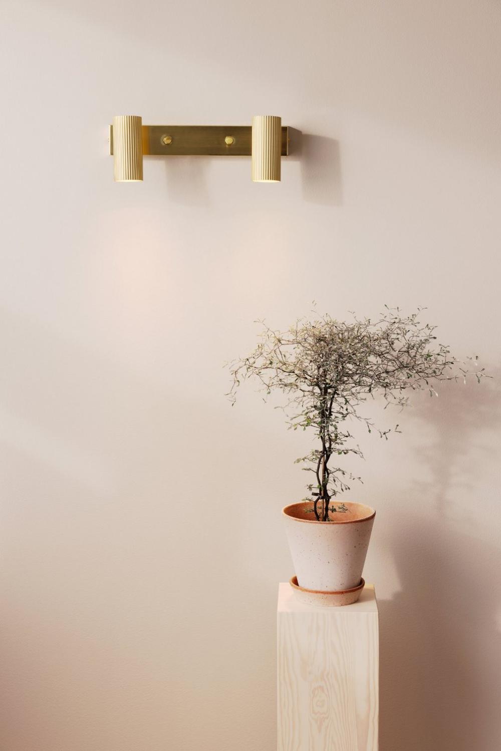 Vägglampa Hubble från Globen Lighting har en modern och funktionell design med två tubformade, räfflade skärmar i metall. Skärmarna är justerbara både i höjd- och sidled, som gör det enkelt att rikta ljuset där du behöver det. Den är tillverkad i borstad mässingsfärgad metall som ger en stilren och samtida känsla. Vägglampan är idealisk i vardagsrum, läshörnor, hall eller arbetsrum där justerbart ljus behövs för både funktion och stämning. Kan enkelt användas för fast installation om så önskas. Ljuskälla ingår ej.