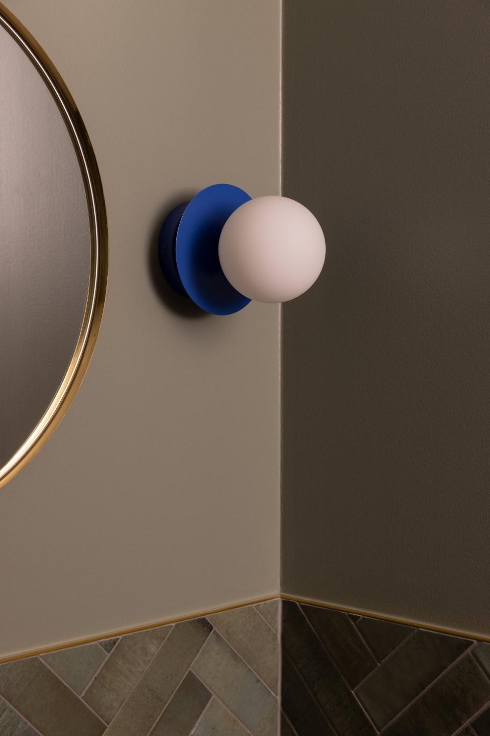 Vägglampa Art Deco från Globen Lighting kan monteras både som vägglampa och plafond. Den klassiska formen, tillsammans med den matta vita glaskupan och blåa metallbasen, ger den en tidlös art deco-känsla. Tack vare IP44-klassningen är den godkänd för användning i badrum, men den passar lika bra i kök, hall eller sovrum. Den rena designen gör sig extra fin när flera monteras i rad på vägg eller i tak. För fast installation.