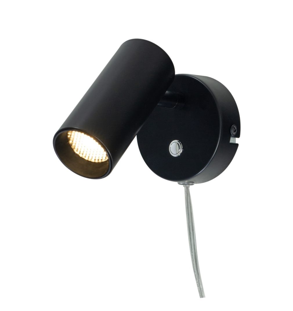 Vägglampa Concord från Aneta Lighting en tidlös och praktisk design i mattlackerad svart metall som passar perfekt som läslampa vid sängen eller soffan. Det justerbara lamphuvudet gör det enkelt att rikta ljuset dit du vill, och den utbytbara LED-ljuskällan ger ett varmvitt och behagligt sken. Bländskyddsrastret minskar bländning och skapar ett mjukt ljus, men kan tas bort om du önskar mer ljusstyrka. Lampan är dimbar via en strömbrytare på väggplattan. Den levereras med en klar sladd. En LED-ljuskälla med en maxeffekt på 8,5W ingår.