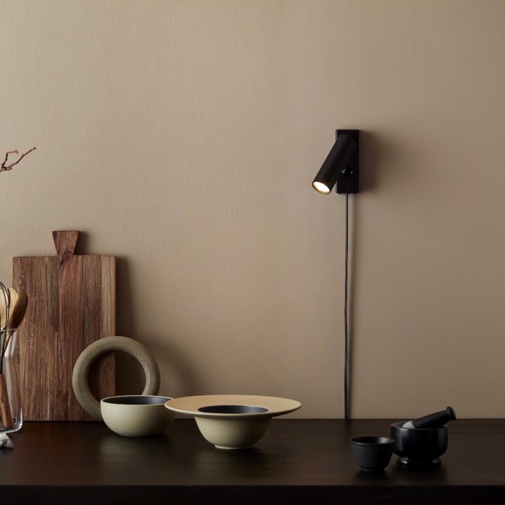 Vägglampa Pipeline från Herstal i svart metall har en minimalistisk design med hög funktionalitet och är en perfekt belysningslösning för moderna interiörer. Den sprider ett varmt och fokuserat ljus som passar utmärkt i sovrummet som läsljus eller för att skapa en mysig atmosfär.