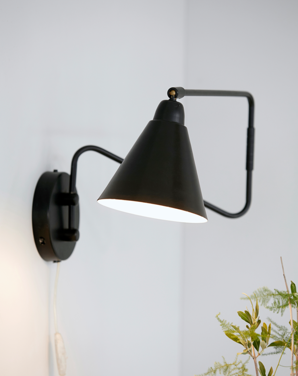 Vägglampa Game från House Doctor har en modern design som ger din inredning en stilfull twist. Lampan har en svart metallfinish med vit insida på lampskärmen, som tillför ett mjukt och behagligt ljus samtidigt som den behåller en strikt och modern känsla. Perfekt som sänglampa i sovrummet eller som dekorativ ljuskälla i vardagsrummet. Game kombinerar funktion med design och blir ett elegant och iögonfallande inslag i hemmet.