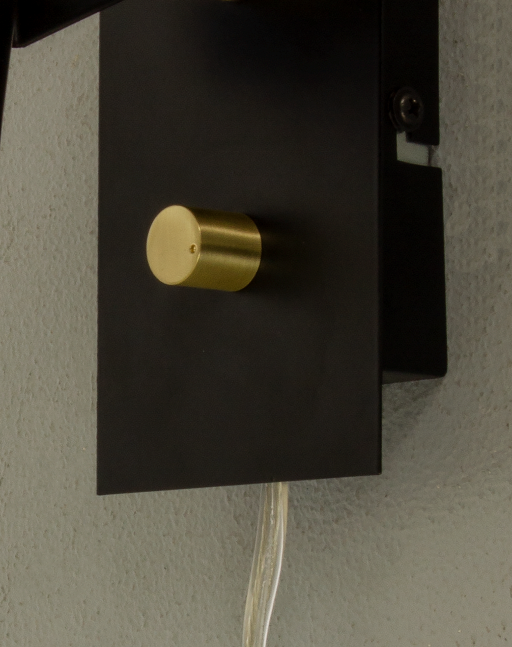 Vägglampa Metz från Aneta Lighting har en industriinspirerad design i svart metall med matta mässingsdetaljer, synliga sladdar och ett lamphuvud som vilar på en stilren metallbåge. Med den inbyggda dimmerbrytaren på väggplattan kan du enkelt reglera ljusstyrkan efter behov, och med den vridbara lampan kan du enkelt rikta ljuset precis dit du vill. Till Metz rekommenderas en ljuskälla med en GU10 sockel, max 9W. Ljuskälla ingår ej.