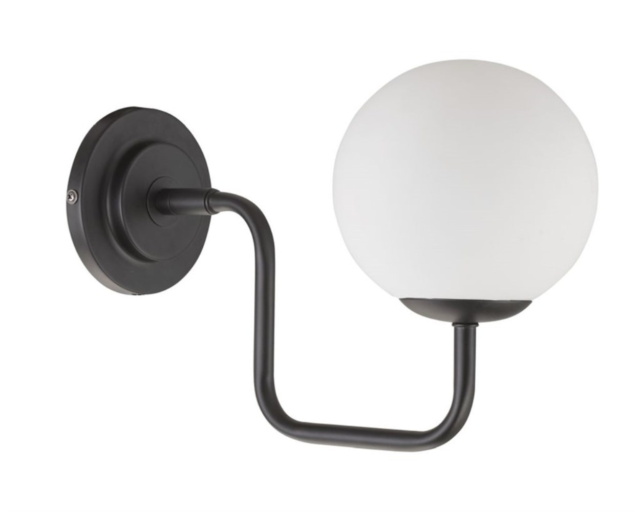 Vägglampa London från Oriva har en vacker unik design i svart metall och en opalfärgad glaskupa. Den sprider ett mjukt och behagligt ljus, samtidigt som den blir en elegant och dekorativ detalj på väggen. Höjd: 21 cm. Längd 14 cm och bredd: 33 cm. Till vägglampan rekommenderas en ljuskälla med en E14 sockel, max 25W. Den levereras med en 1,7 meter svart sladd. Ljuskälla ingår ej.