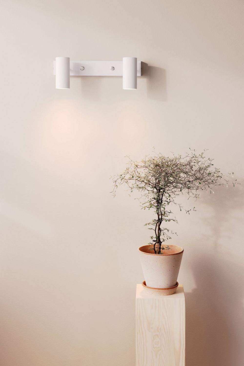 Vägglampa Hubble från Globen Lighting har en modern och funktionell design med två tubformade, räfflade skärmar i metall. Skärmarna är justerbara både i höjd- och sidled, som gör det enkelt att rikta ljuset där du behöver det. Den är tillverkad i mattvit-lackerad metall med detaljer i kromfärgad metall som ger en stilren och samtida känsla. Vägglampan är idealisk i vardagsrum, läshörnor, hall eller arbetsrum där justerbart ljus behövs för både funktion och stämning. Kan enkelt användas för fast installation om så önskas. Ljuskälla ingår ej.