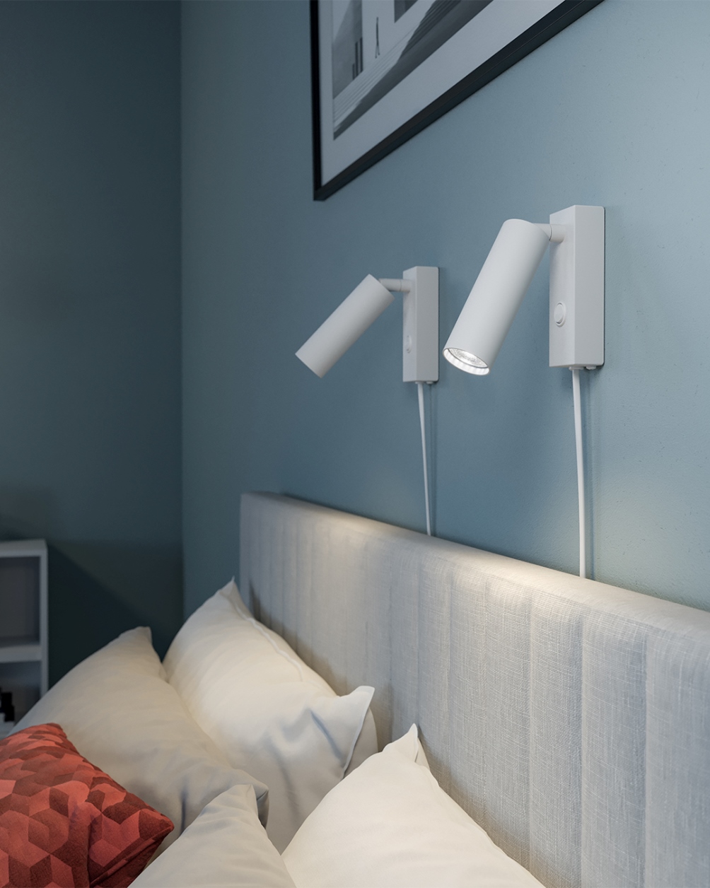 Vägglampa Pipeline från Herstal i vit metall har en minimalistisk design med hög funktionalitet och är en perfekt belysningslösning för moderna interiörer. Den sprider ett varmt och fokuserat ljus som passar utmärkt i sovrummet som läsljus eller för att skapa en mysig atmosfär.