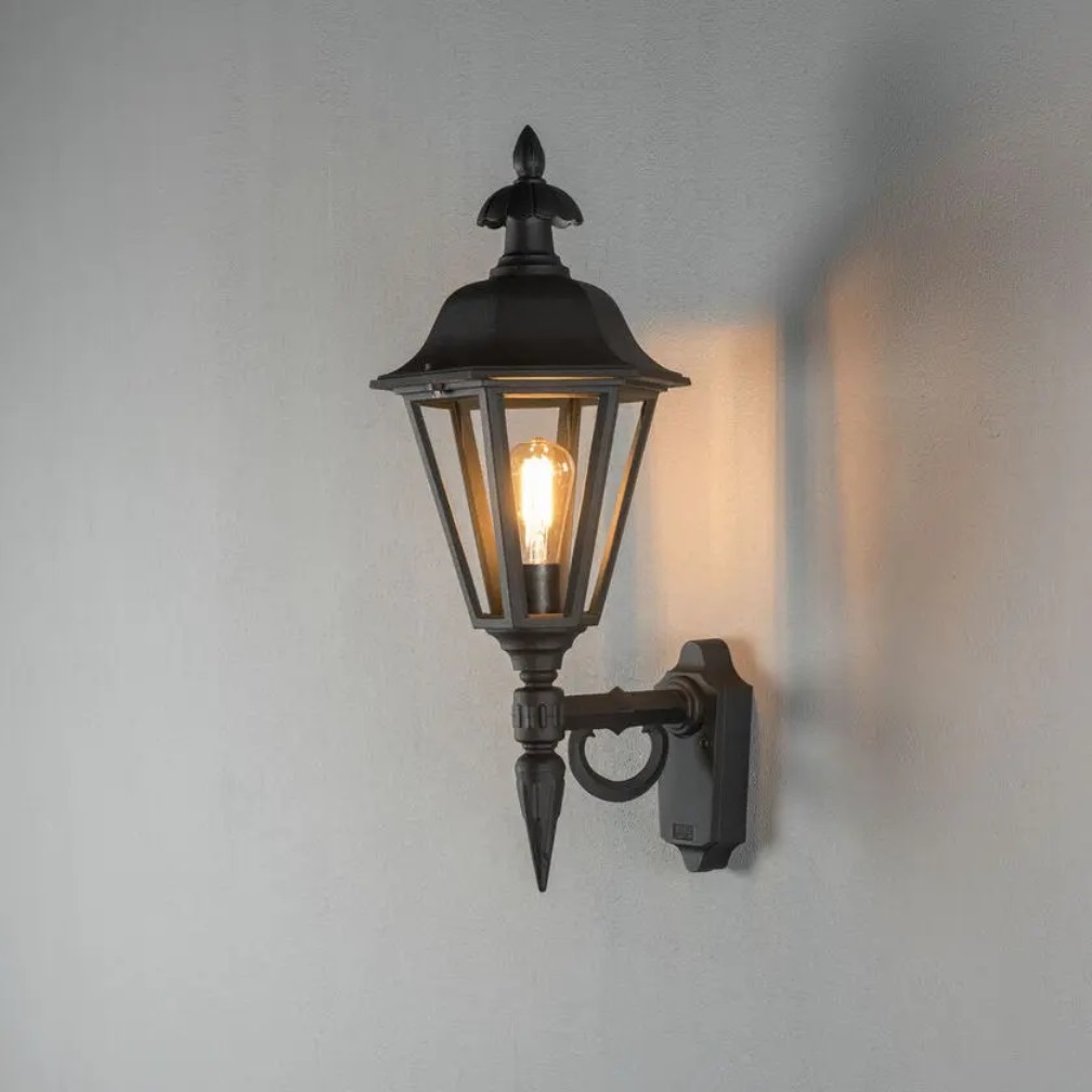 Pallas vägglykta i svart från Konstsmide kombinerar tidlös design med hög kvalitet. Den uppåtriktade lyktan skapar ett elegant och inbjudande sken som framhäver fasadens detaljer på ett stilfullt sätt. Stommen är tillverkad i lackad aluminium i djup svart ton, vilket ger ett elegant intryck. Den klara glasinsatsen sprider ljuset jämnt och skapar ett vackert ljusspel, perfekt för att ge din fasad stilfull belysning. Till Pallas rekommenderas en ljuskälla med en E27 sockel, max 100W. Ljuskälla ingår ej.