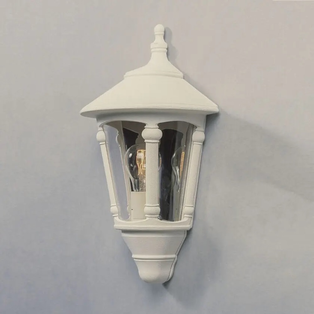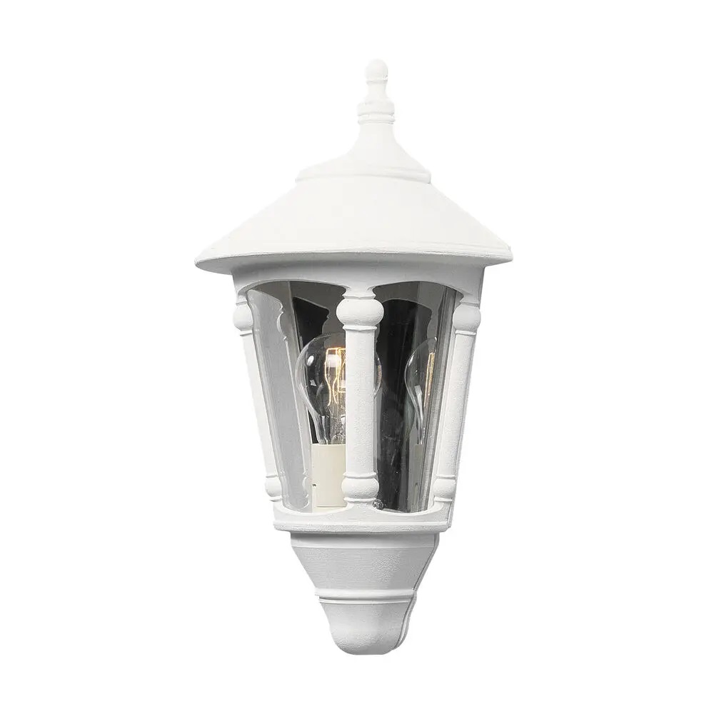 Pallas väggplafond vit från Konstsmide är en elegant och tidlös fasadbelysning i klassisk stil som passar perfekt för både entré, garage och husvägg. Den är tillverkad i lackerad vit aluminium med klara glaspartier som sprider ett vackert och välkomnande ljus. Den klassiska lyktformen ger ett exklusivt intryck och smälter in på de flesta hustyper alltifrån traditionella villor till moderna fasader. Till Pallas väggplafond rekommenderas en ljuskälla med E27-sockel, max 60W ljuskälla ingår ej.
