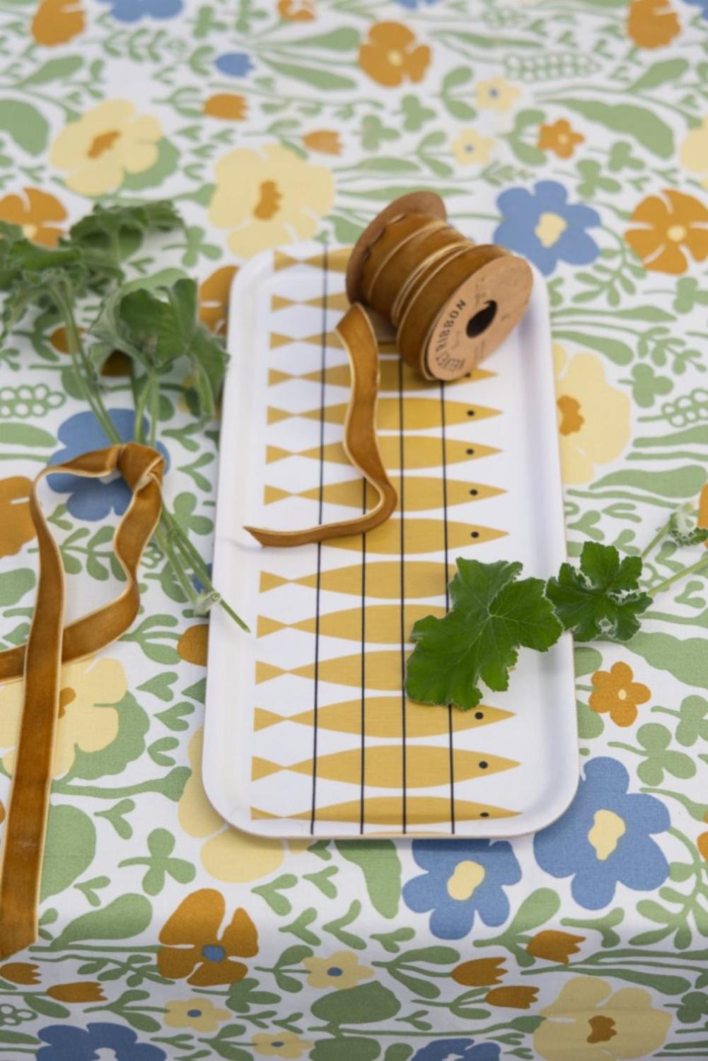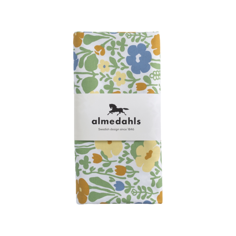 Vaxduk Fauna från Almedahls i en härlig gulgrön nyans är en avtorkningsbar bomullsduk med charmig retrodesign. Det klassiska mönstret med stiliserade blommor i grönt och gult ger bordet en livfull och somrig känsla. Designen är skapad av Anna-Lena Emdén under 1970-talet och bar ursprungligen namnet Ängland.